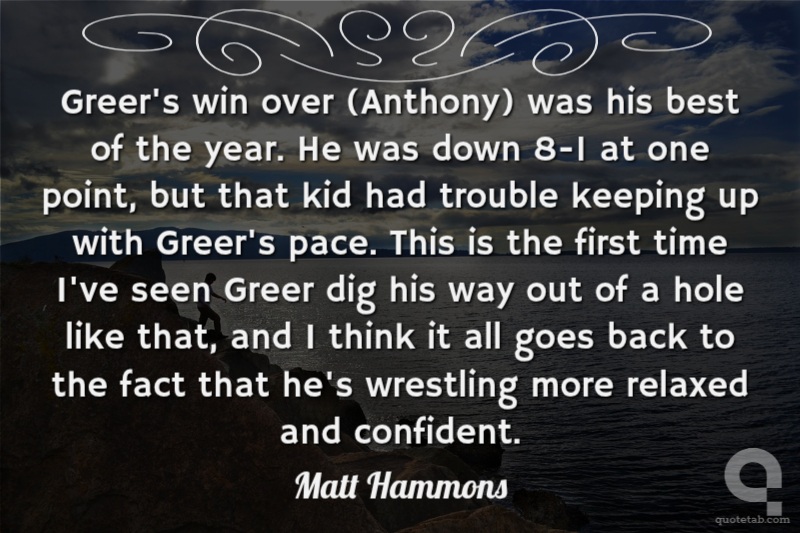 Greer's win over (Anthony) was his best of the year. He was down 8-1 at one point, but that kid had trouble keeping up with Greer's pace. This is the first time I've seen Greer dig his way out of a hole like that, and I think it all goes back to the fact that he's wrestling more relaxed and confident.