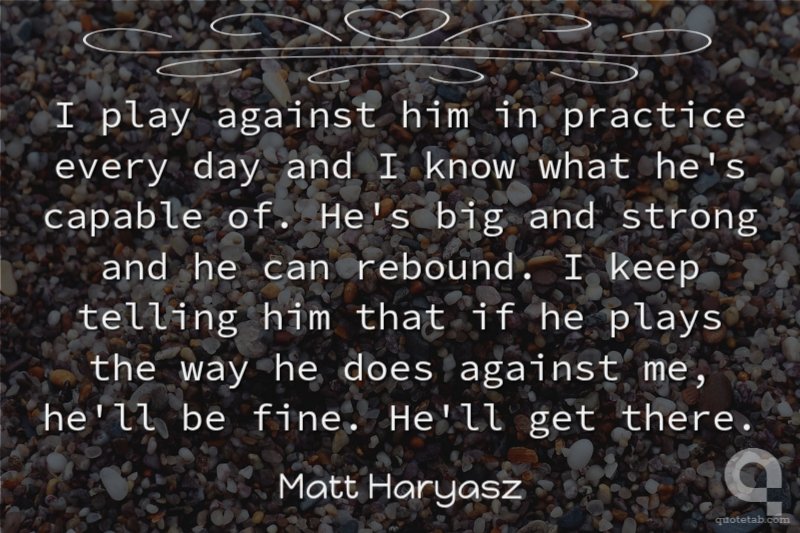 I play against him in practice every day and I know what he's capable of. He's big and strong and he can rebound. I keep telling him that if he plays the way he does against me, he'll be fine. He'll get there.