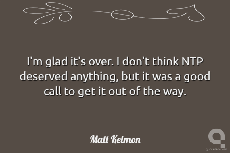 I'm glad it's over. I don't think NTP deserved anything, but it was a good call to get it out of the way.