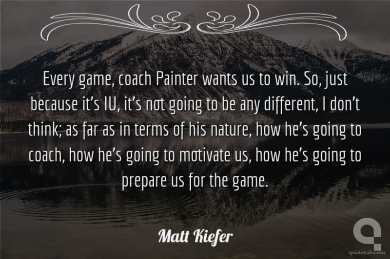 Every game, coach Painter wants us to win. So, just because it's IU, it's not going to be any different, I don't think; as far as in terms of his nature, how he's going to coach, how he's going to motivate us, how he's going to prepare us for the game.