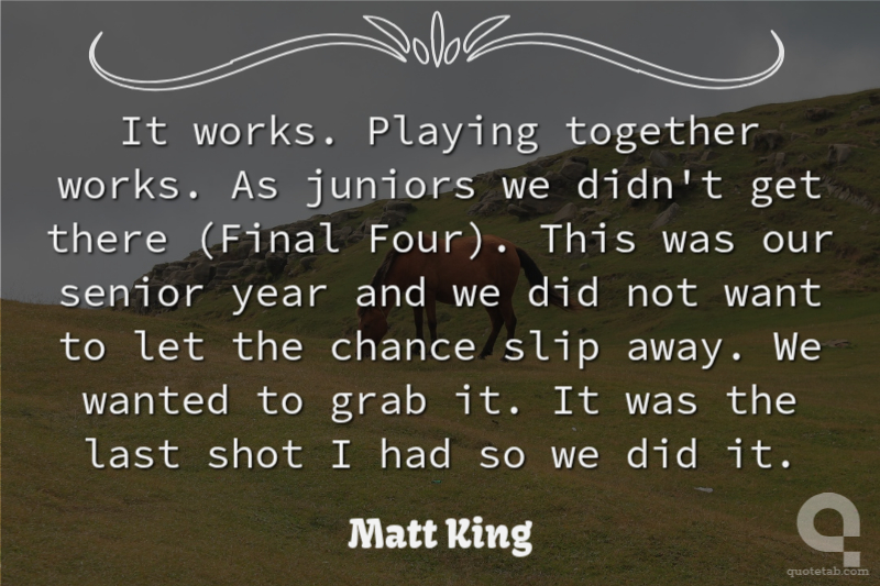 It works. Playing together works. As juniors we didn't get there (Final Four). This was our senior year and we did not want to let the chance slip away. We wanted to grab it. It was the last shot I had so we did it.