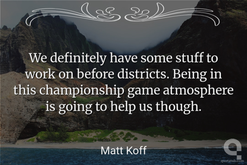 We definitely have some stuff to work on before districts. Being in this championship game atmosphere is going to help us though.