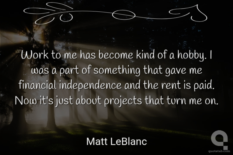 Work to me has become kind of a hobby. I was a part of something that gave me financial independence and the rent is paid. Now it's just about projects that turn me on.