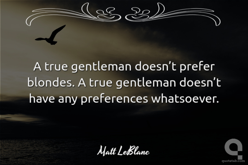 A true gentleman doesn’t prefer blondes. A true gentleman doesn’t have any preferences whatsoever.