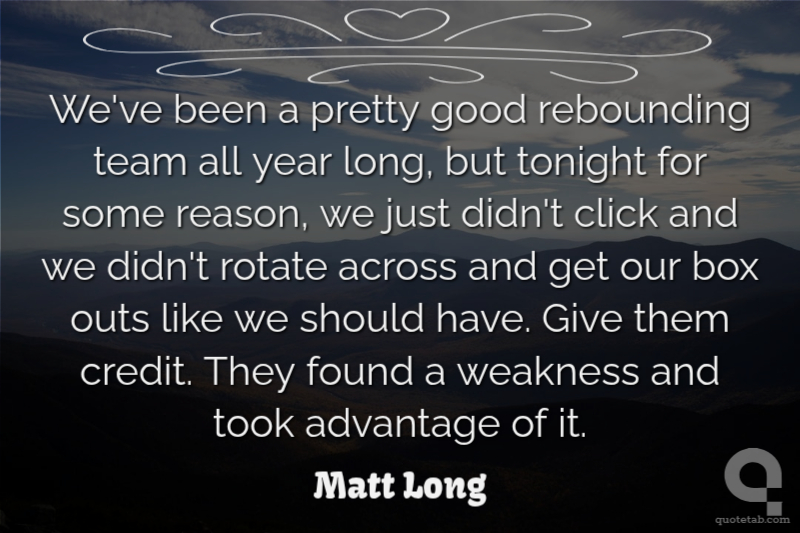 We've been a pretty good rebounding team all year long, but tonight for some reason, we just didn't click and we didn't rotate across and get our box outs like we should have. Give them credit. They found a weakness and took advantage of it.