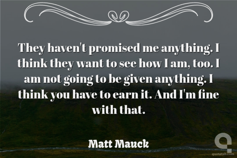 They haven't promised me anything. I think they want to see how I am, too. I am not going to be given anything. I think you have to earn it. And I'm fine with that.