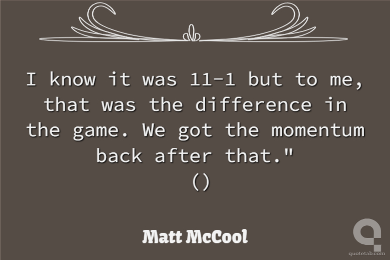 I know it was 11-1 but to me, that was the difference in the game. We got the momentum back after that." ()