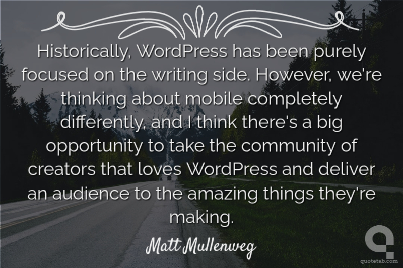Historically, WordPress has been purely focused on the writing side. However, we're thinking about mobile completely differently, and I think there's a big opportunity to take the community of creators that loves WordPress and deliver an audience to the amazing things they're making.