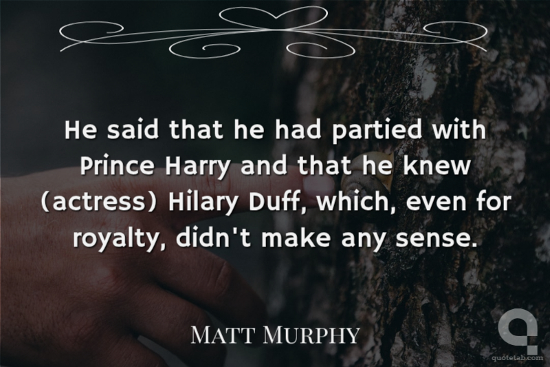 He said that he had partied with Prince Harry and that he knew (actress) Hilary Duff, which, even for royalty, didn't make any sense.