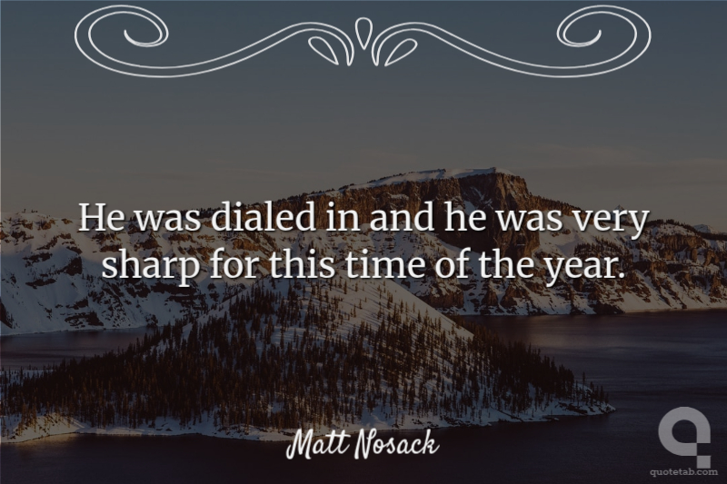He was dialed in and he was very sharp for this time of the year.