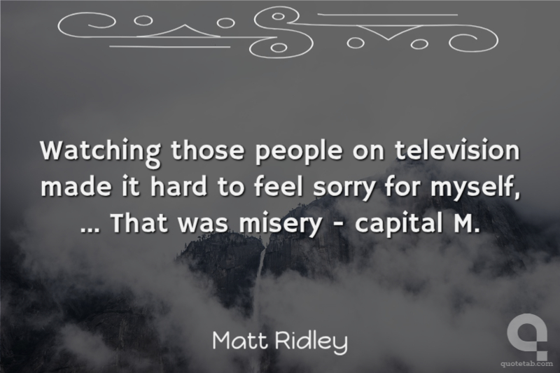 Watching those people on television made it hard to feel sorry for myself, ... That was misery - capital M.