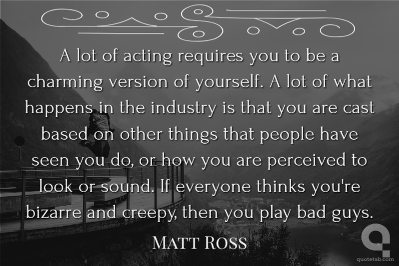 A lot of acting requires you to be a charming version of yourself. A lot of what happens in the industry is that you are cast based on other things that people have seen you do, or how you are perceived to look or sound. If everyone thinks you're bizarre and creepy, then you play bad guys.