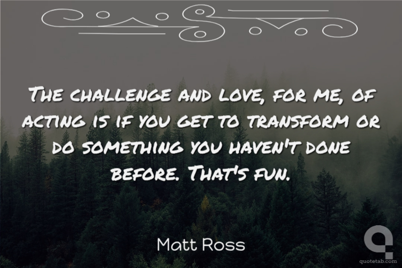 The challenge and love, for me, of acting is if you get to transform or do something you haven't done before. That's fun.