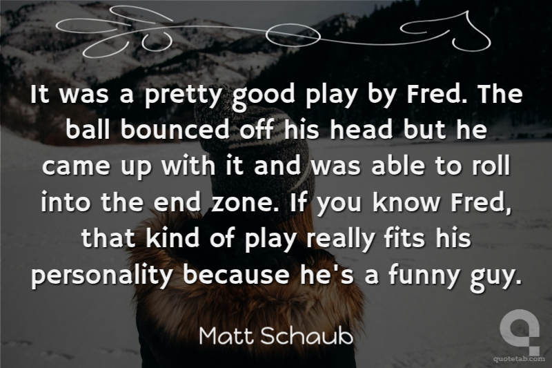 It was a pretty good play by Fred. The ball bounced off his head but he came up with it and was able to roll into the end zone. If you know Fred, that kind of play really fits his personality because he's a funny guy.