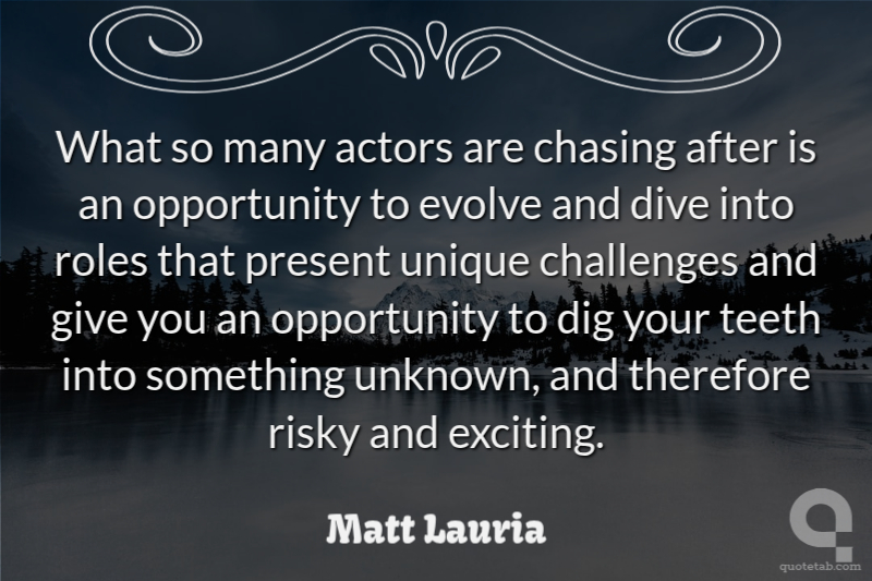 What so many actors are chasing after is an opportunity to evolve and dive into roles that present unique challenges and give you an opportunity to dig your teeth into something unknown, and therefore risky and exciting.
