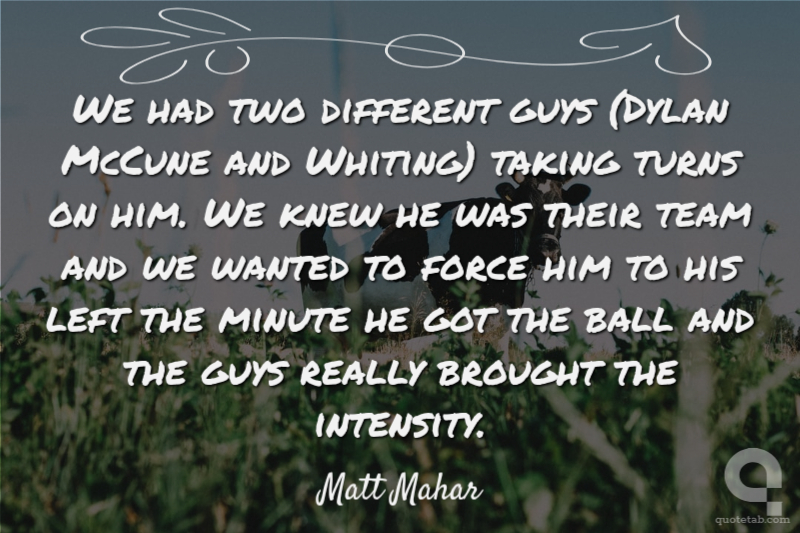 We had two different guys (Dylan McCune and Whiting) taking turns on him. We knew he was their team and we wanted to force him to his left the minute he got the ball and the guys really brought the intensity.