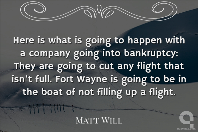 Here is what is going to happen with a company going into bankruptcy: They are going to cut any flight that isn't full. Fort Wayne is going to be in the boat of not filling up a flight.