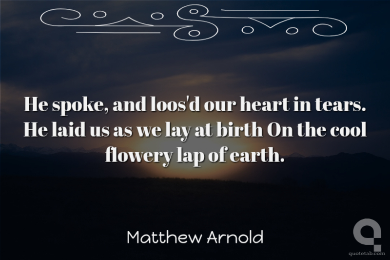 He spoke, and loos'd our heart in tears. He laid us as we lay at birth On the cool flowery lap of earth.