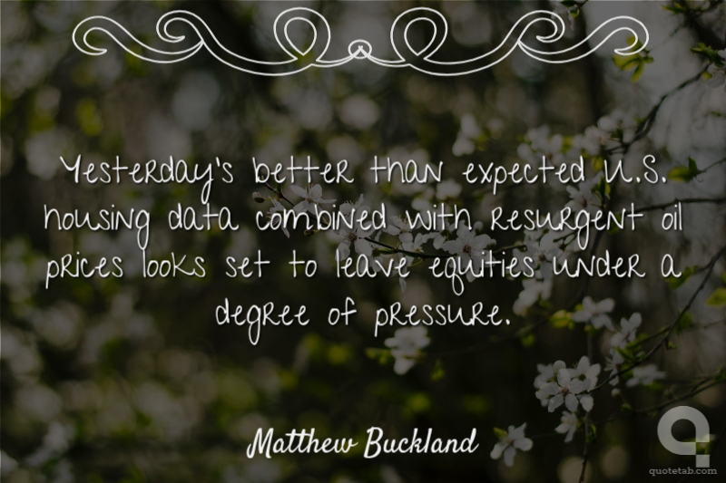 Yesterday's better than expected U.S. housing data combined with resurgent oil prices looks set to leave equities under a degree of pressure.