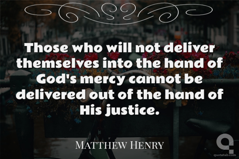 Those who will not deliver themselves into the hand of God's mercy cannot be delivered out of the hand of His justice.