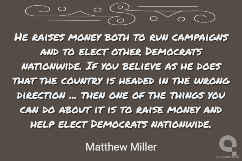 He raises money both to run campaigns and to elect other Democrats nationwide. If you believe as he does that the country is headed in the wrong direction ... then one of the things you can do about it is to raise money and help elect Democrats nationwide.