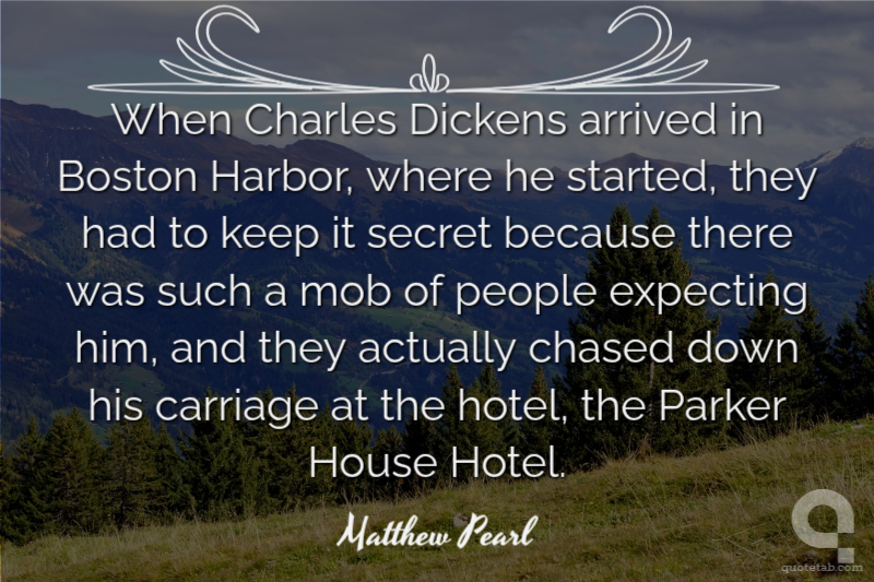 When Charles Dickens arrived in Boston Harbor, where he started, they had to keep it secret because there was such a mob of people expecting him, and they actually chased down his carriage at the hotel, the Parker House Hotel.