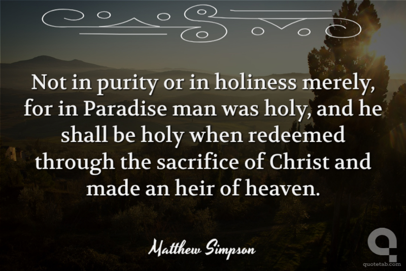 Not in purity or in holiness merely, for in Paradise man was holy, and he shall be holy when redeemed through the sacrifice of Christ and made an heir of heaven.