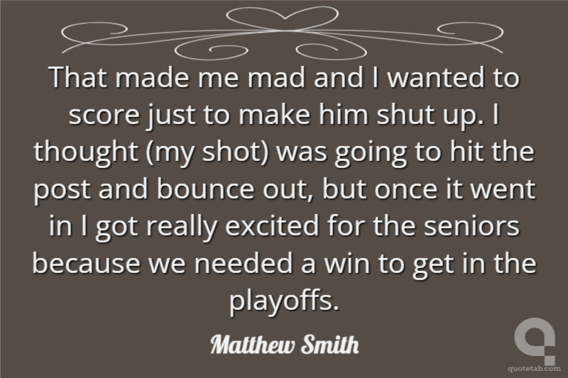 That made me mad and I wanted to score just to make him shut up. I thought (my shot) was going to hit the post and bounce out, but once it went in I got really excited for the seniors because we needed a win to get in the playoffs.