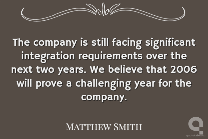 The company is still facing significant integration requirements over the next two years. We believe that 2006 will prove a challenging year for the company.
