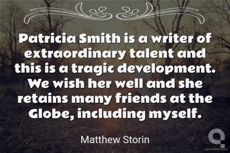 Patricia Smith is a writer of extraordinary talent and this is a tragic development. We wish her well and she retains many friends at the Globe, including myself.