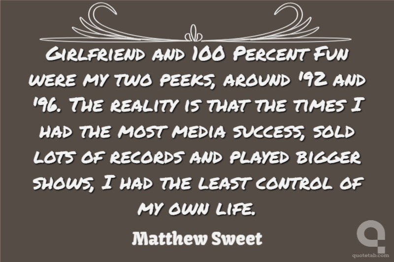 Girlfriend and 100 Percent Fun were my two peeks, around '92 and '96. The reality is that the times I had the most media success, sold lots of records and played bigger shows, I had the least control of my own life.