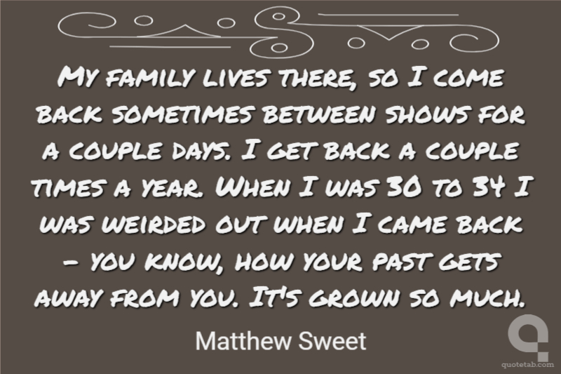 My family lives there, so I come back sometimes between shows for a couple days. I get back a couple times a year. When I was 30 to 34 I was weirded out when I came back - you know, how your past gets away from you. It's grown so much.