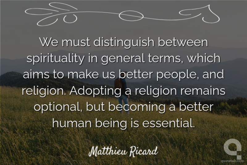 We must distinguish between spirituality in general terms, which aims to make us better people, and religion. Adopting a religion remains optional, but becoming a better human being is essential.