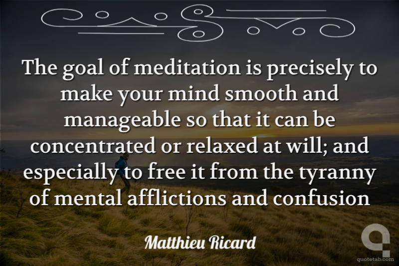 The goal of meditation is precisely to make your mind smooth and manageable so that it can be concentrated or relaxed at will; and especially to free it from the tyranny of mental afflictions and confusion