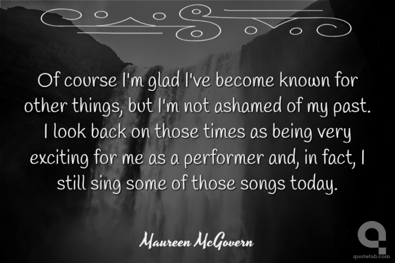 Of course I'm glad I've become known for other things, but I'm not ashamed of my past. I look back on those times as being very exciting for me as a performer and, in fact, I still sing some of those songs today.
