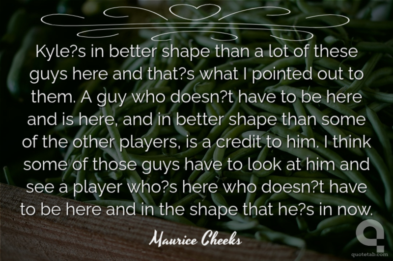 Kyle?s in better shape than a lot of these guys here and that?s what I pointed out to them. A guy who doesn?t have to be here and is here, and in better shape than some of the other players, is a credit to him. I think some of those guys have to look at him and see a player who?s here who doesn?t have to be here and in the shape that he?s in now.