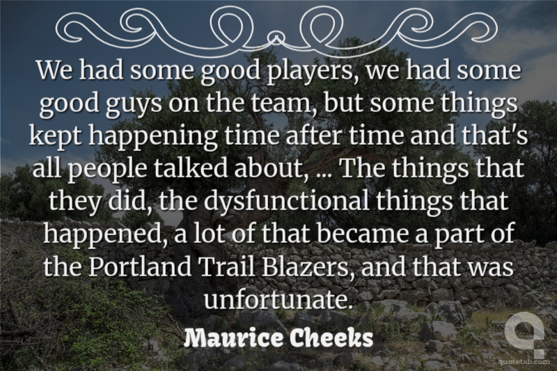 We had some good players, we had some good guys on the team, but some things kept happening time after time and that's all people talked about, ... The things that they did, the dysfunctional things that happened, a lot of that became a part of the Portland Trail Blazers, and that was unfortunate.