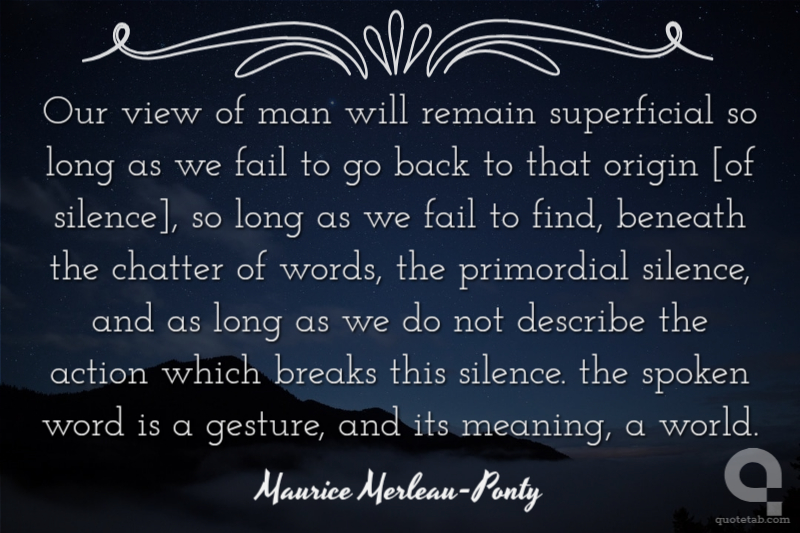 Our view of man will remain superficial so long as we fail to go back to that origin [of silence], so long as we fail to find, beneath the chatter of words, the primordial silence, and as long as we do not describe the action which breaks this silence. the spoken word is a gesture, and its meaning, a world.