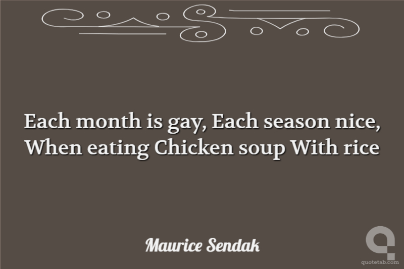 Each month is gay, Each season nice, When eating Chicken soup With rice