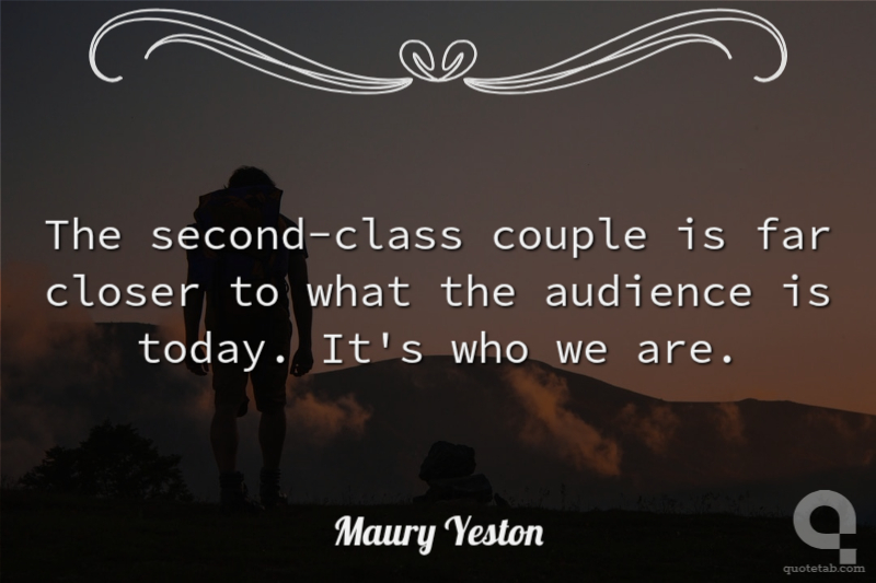The second-class couple is far closer to what the audience is today. It's who we are.