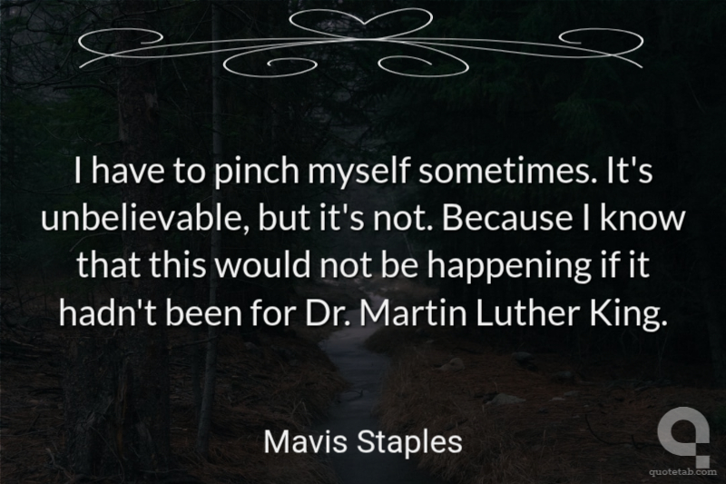 I have to pinch myself sometimes. It's unbelievable, but it's not. Because I know that this would not be happening if it hadn't been for Dr. Martin Luther King.