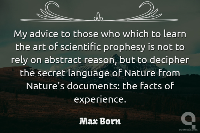 My advice to those who which to learn the art of scientific prophesy is not to rely on abstract reason, but to decipher the secret language of Nature from Nature's documents: the facts of experience.