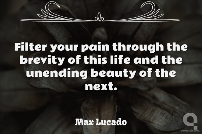 Filter your pain through the brevity of this life and the unending beauty of the next.