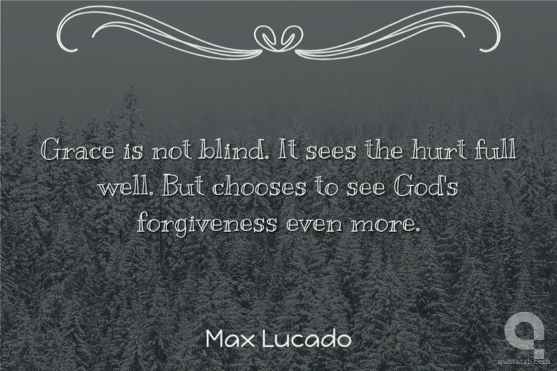 Grace is not blind. It sees the hurt full well. But chooses to see God's forgiveness even more.