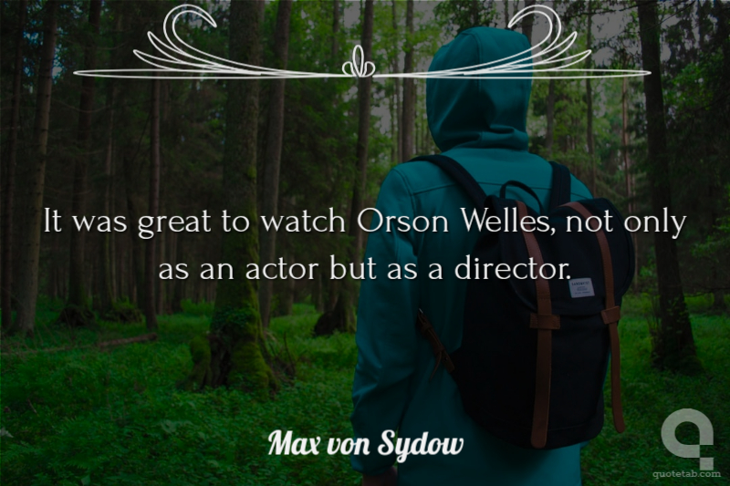 It was great to watch Orson Welles, not only as an actor but as a director.