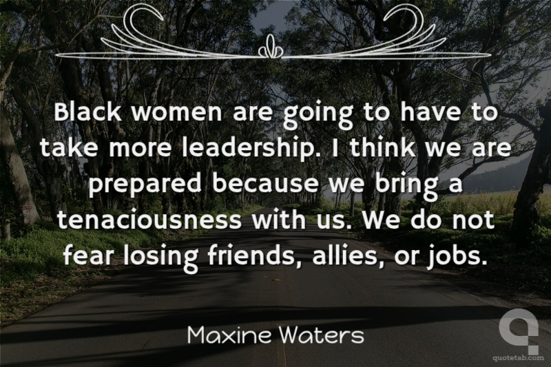 Black women are going to have to take more leadership. I think we are prepared because we bring a tenaciousness with us. We do not fear losing friends, allies, or jobs.