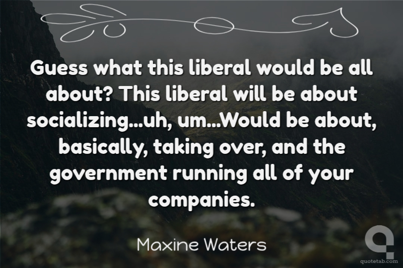 Guess what this liberal would be all about? This liberal will be about socializing...uh, um...Would be about, basically, taking over, and the government running all of your companies.