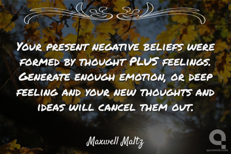 Your present negative beliefs were formed by thought PLUS feelings. Generate enough emotion, or deep feeling and your new thoughts and ideas will cancel them out.