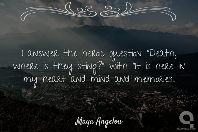 I answer the heroic question "Death, where is they sting?" with "It is here in my heart and mind and memories.