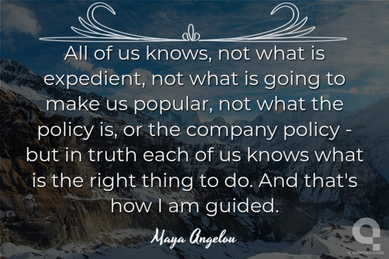 All of us knows, not what is expedient, not what is going to make us popular, not what the policy is, or the company policy - but in truth each of us knows what is the right thing to do. And that's how I am guided.